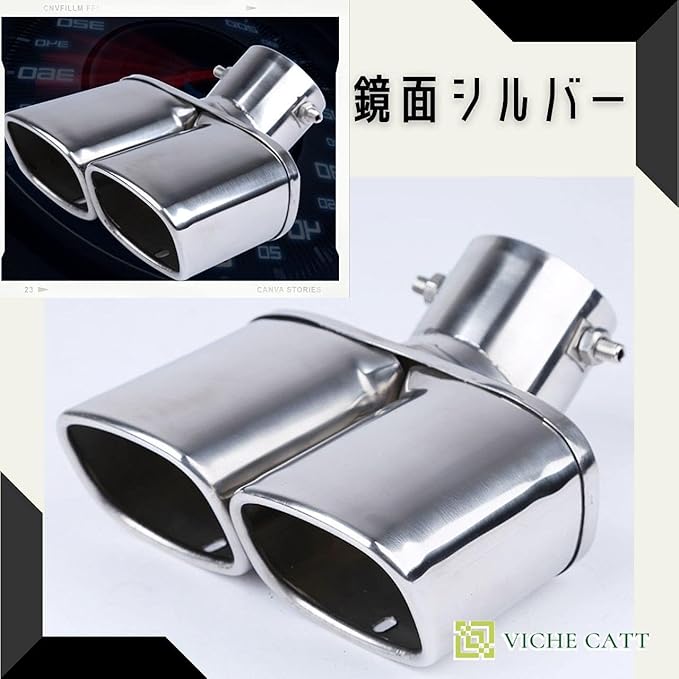 VICHE CATT 車用 マフラーカッター 下向き 2本出し スクエア ステンレス マフラー カスタム ドレスアップ(シルバー)