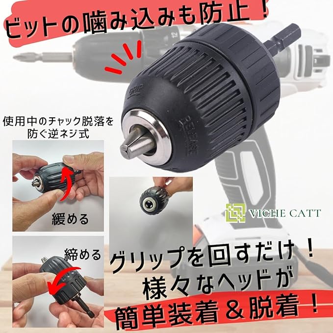 VICHE CATT ドリルチャック アダプター 六角軸 1.0~10mm 対応 インパクトドライバ アタッチメント 電動ドリル (六角軸.)