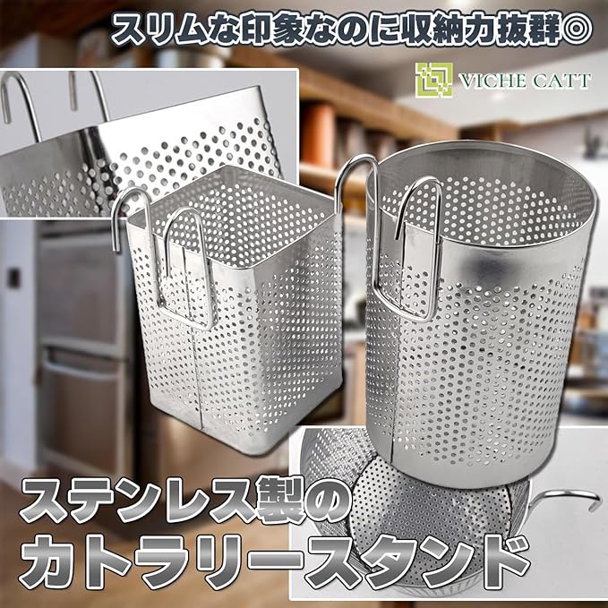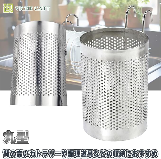 VICHE CATT キッチン用品 箸立て カトラリー スタンド 水切り 箸入れ 箸たて ステンレス (丸型)