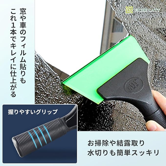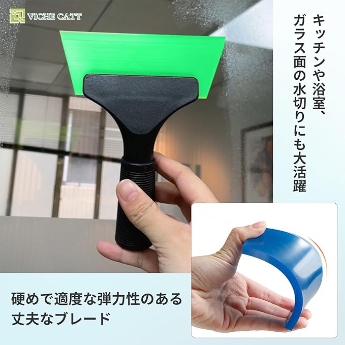 車のカーフィルム施工や自宅の窓の断熱フィルム貼り、ラッピングフィルムやカッティングシートの圧着に大活躍。さらに窓の結露取りやガラス・浴室の水切りなど、日常の掃除にも便利です。交換ブレード付きなので作業の中断を最小限に抑えられ、家庭用からプロの施工現場まで幅広く活躍。収納もかさばらず、錆びや腐食の心配もありません