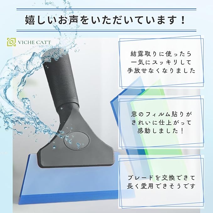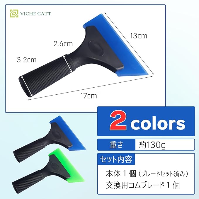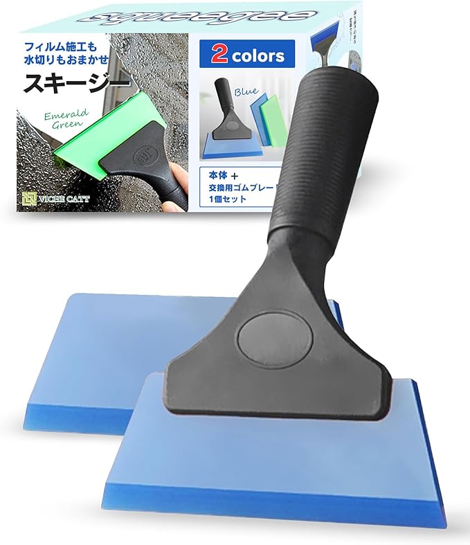VICHE CATT スキージー ゴムベラ カーフィルム 施工キット ヘラ フィルム貼り 付属 交換用ブレード1個付 (ブルー)