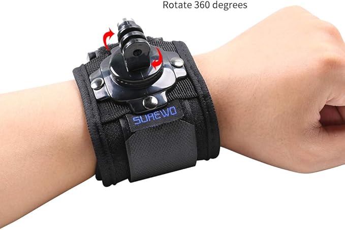 SUREWO 360 回転リストストラップマウント、GoPro Hero 12/11/10/9/8/7/6/5ブラックと互換性あり、セッション5、シルバー4、DJI Osmoアクション、AKASO/Camparkなど