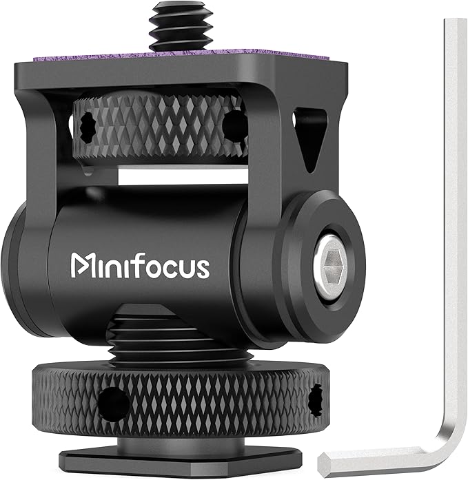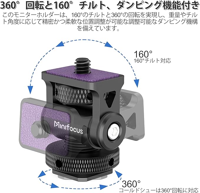 MINIFOCUS 冷靴付きカメラモニターマウント、5インチ&7インチフィールドモニター用1/4インチネジ、360度回転&160度チルト対応ホルダー(カメラフォンケージ・LEDビデオライト用)