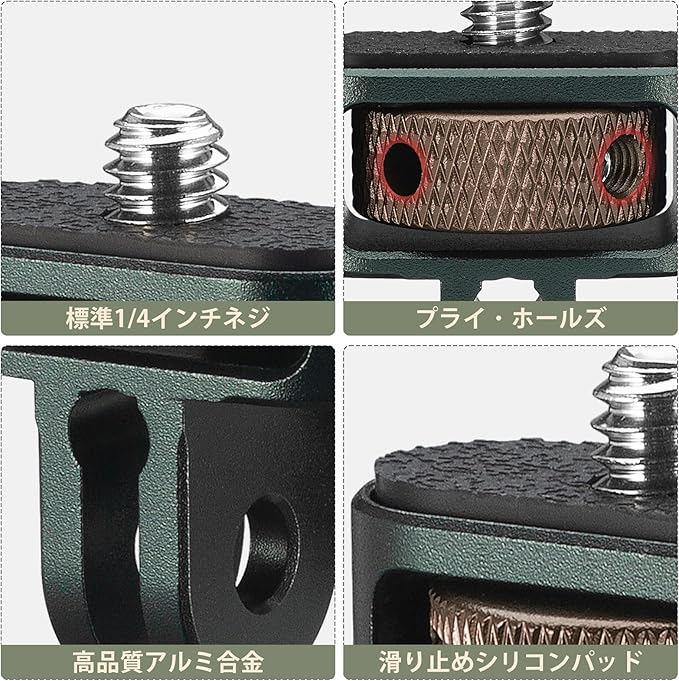 優れた品質:アルミ合金製固定ベース+ステンレス製ネジ+滑り止め・傷防止シリコンパッド、陽極酸化処理とサンドブラスト加工により、色褪せず肌触りが良好。ターンテーブル穴でカメラを任意の位置に固定可能、分解不要で操作性に優れる