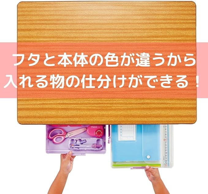 フタとトレイを並べると学校机の引き出しとして使用できる!