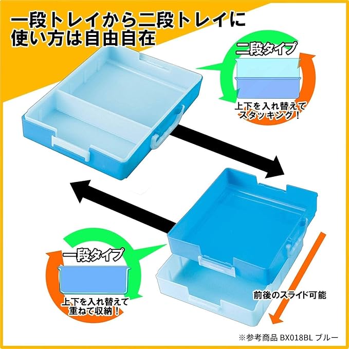 トレイとフタを上下入れ替えて重ねると、それぞれ1段トレイ、2段トレイとして使用可能!