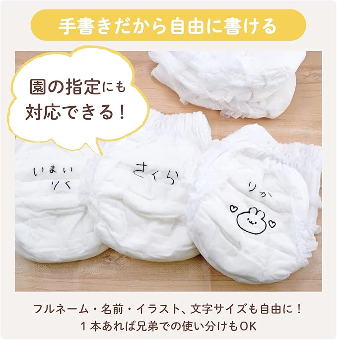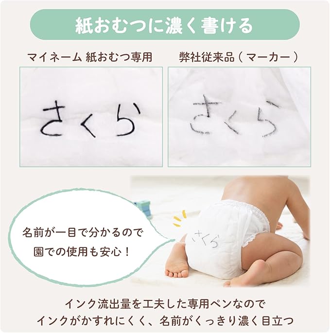 【特長1】保育園や子ども園などで使う紙おむつの名前書きに