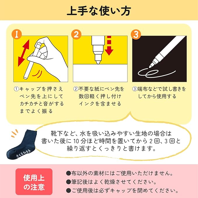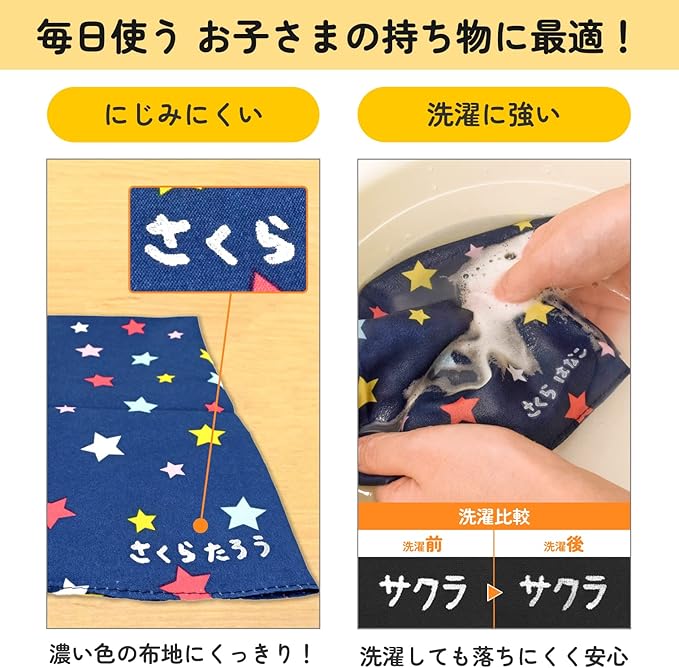 ・にじみにくく、洗濯しても落ちにくい。毎日使うお子様の持ち物にも安心して使える。