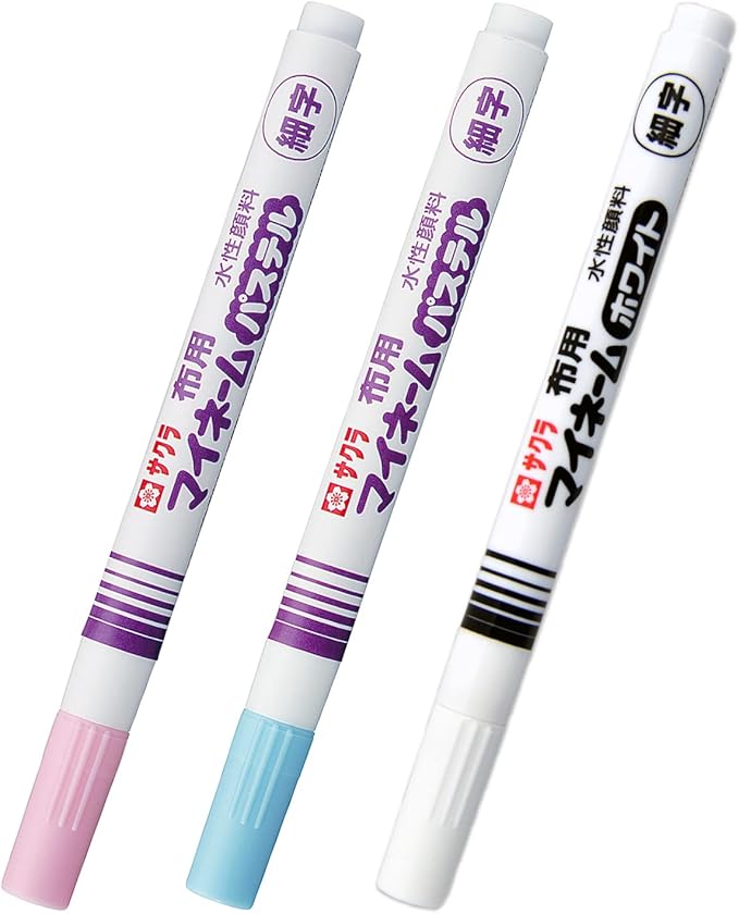 濃い色の布にもカラフルに名前書きができる、マイネームパステル&ホワイトの3色セット