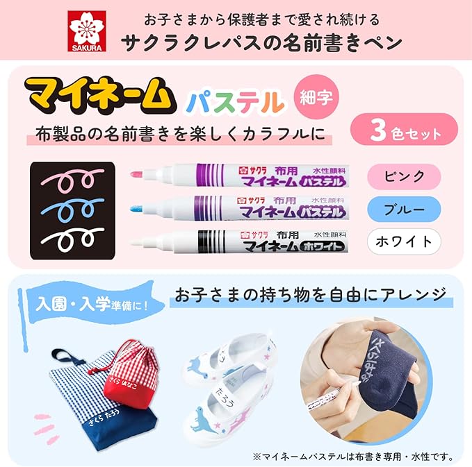 サクラクレパス 名前ペン 水性 マイネームパステル 細字 3色 YKM3-P