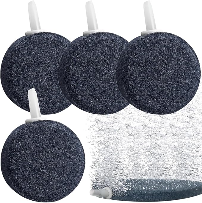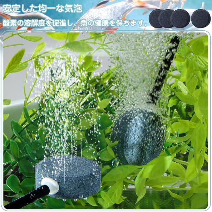 エアーストーン 丸形 4個セット 気泡ディフューザー 小型 空気石 直径4cm 厚1.5cm 気泡拡散器 細かい泡 エアレーション 再利用可能 酸素補給 水槽 水族館 アクアリウム 養液栽培用(口径4mmエアチューブ)
