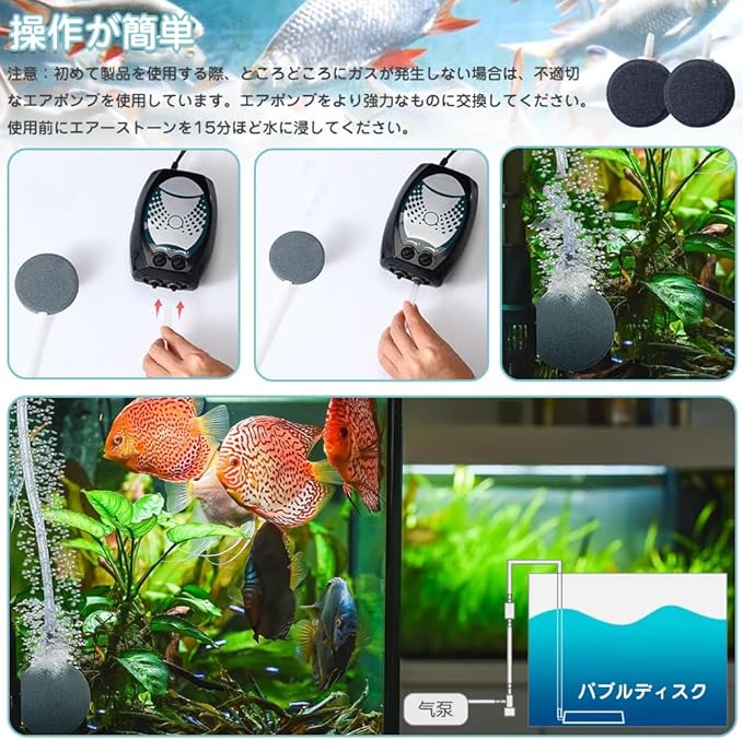 エアーディスク気泡拡散器:エアーストーンは内径4mmに適合します。エアーストーンディスクはエアーポンプと一緒に使用しないと効果がなく、生き生きとした面白い水中景観を作り出します。