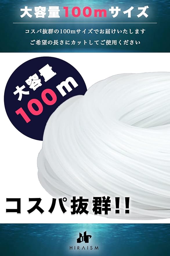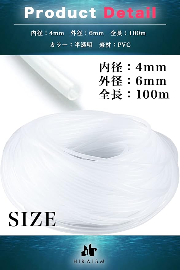 HIRAISM シリコンチューブ エアチューブ 水槽ポンプ エアレーション アクアリウム 内径4mm 外径6mm 長さ100m