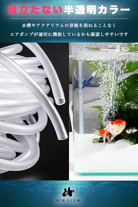 【目立たない半透明カラー】目立ちにくい半透明のエアチューブですので、おしゃれな水槽やアクアリウムの景観を損ねることなくお使いいただけます。また、エアポンプが適切に機能しているかも確認しやすいです。