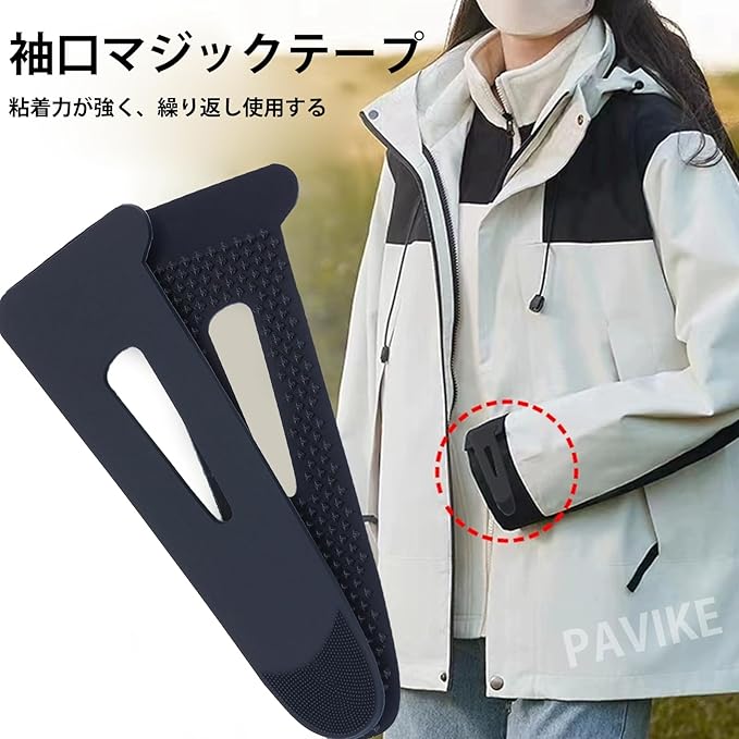 PAVIKE マジックテープ 衣類 袖口 留め具 袖口ホルダー フックループ 使いやすい 互換性 耐久性 素早く調整 様々なシーンに適応 ブラック 2個セット 約9*3CM 約10g