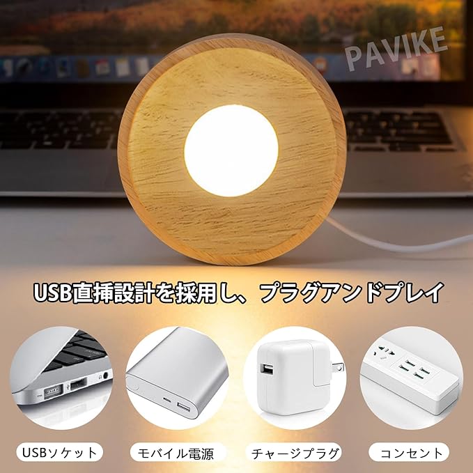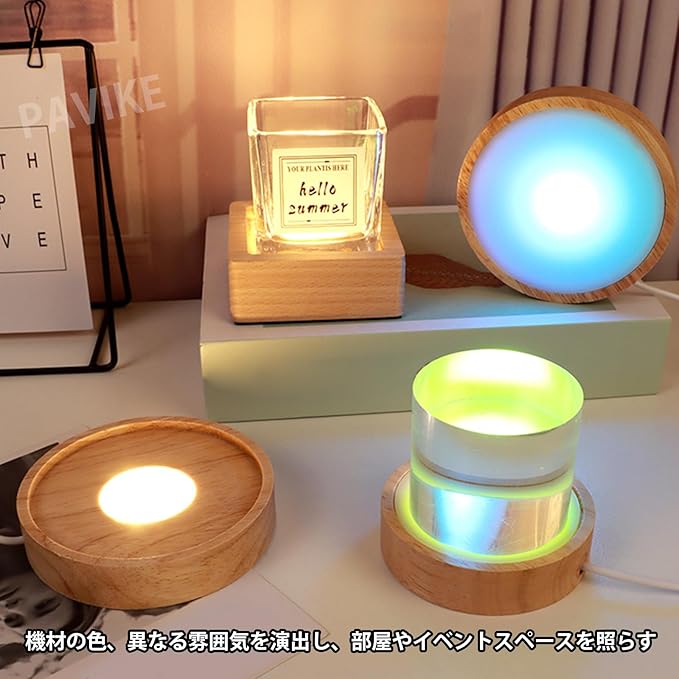 PAVIKE光るコースター【7色】 ledコースターUSB led 台座 ライトアップ コースター 円型 光る 台座 ライトホームオフィスの装飾、USB直挿し式、物体展示用品、パーティー、ホーム装飾、バーなどに使用