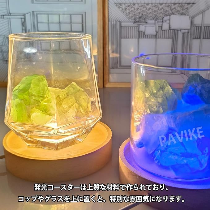 【材質】光るコースターは良質な材料で作られており、この上にコップやグラスを置くと、特別な雰囲気になり、長期的に使用することができます。