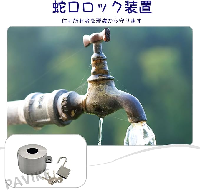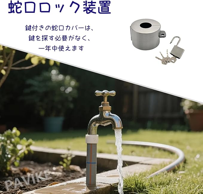 PAVIKE 屋外 水道 蛇口ロック 屋外蛇口カバー 門扉水栓ロック装置 ドアノブロック ドアノブカバー 水栓錠 ホームタンク 戸外蛇口錠 盗難防止 キー付き ステンレス製 屋外水栓 水道部品 防犯グッズ