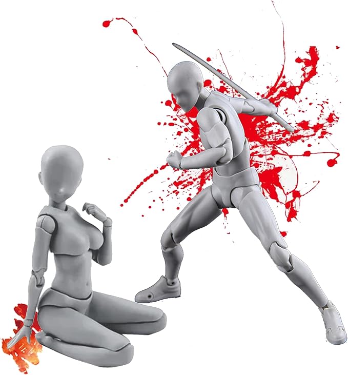 ✨【関節可動】ヘッド、胸、腰、肩、肘、手首、膝、足首など30個関節が可動し、複数なポーズが再現できます。関節交換パーツと豊な武器道具が含まれ、360度回転もできます。プロな描く練習として、人の各動きをもっと把握することができ、絵をより鮮やかにします(セットにはパーツが含まれます)。