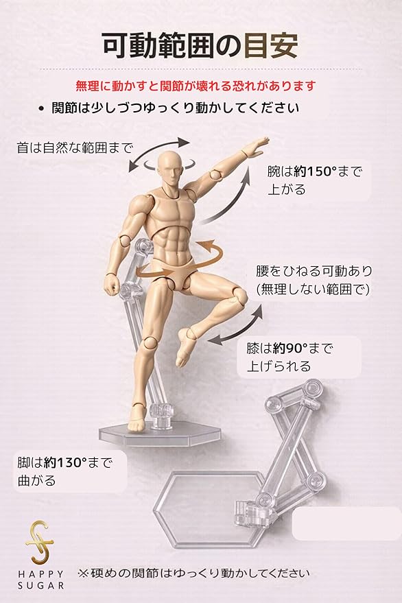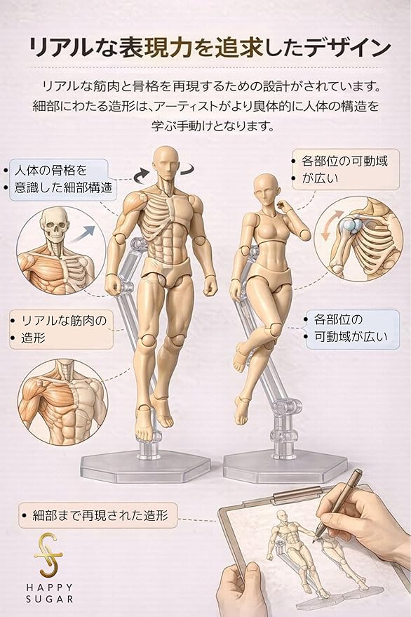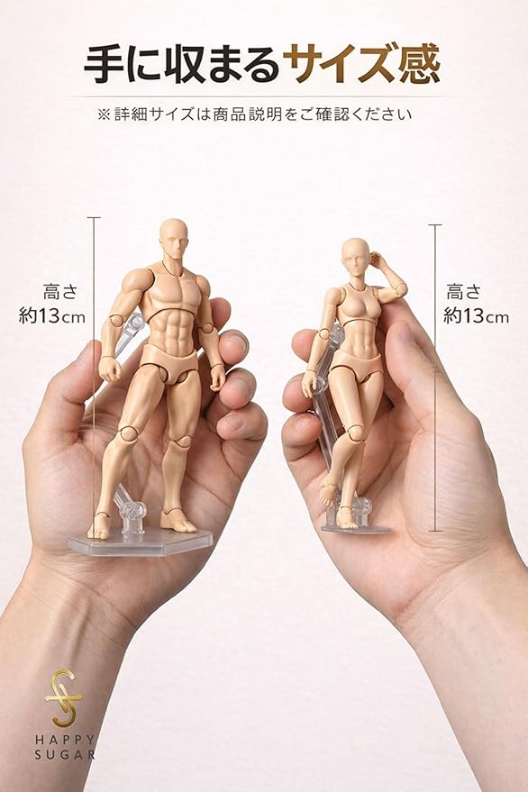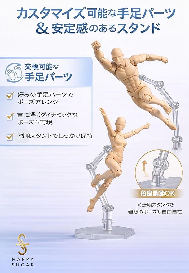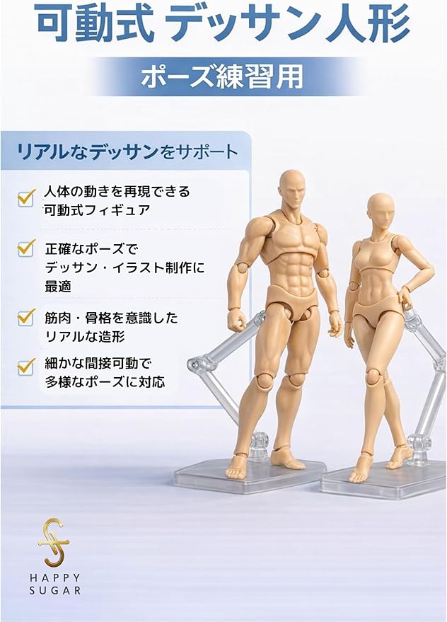 HAPPY SUGAR デッサン人形 可動 フィギュア ポーズ人形 マネキン ホビー 人形 人体 デッサン スタンド 男女セット