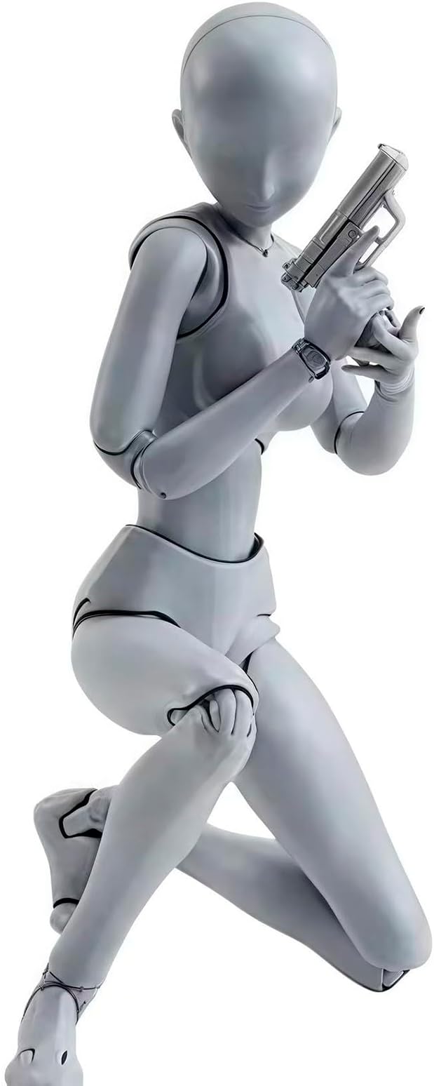 デッサン人形 フィギュア 30個関節可動 【プロ漫画家推薦】 筋肉体型 作画 練習 美術 スケッチ 小道具 女性-グレー