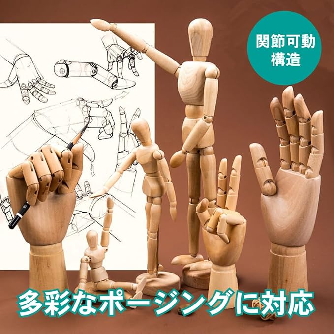 デッサン ドール 人形 木製 モデル フィギュア 可動 関節 ポーズ練習 美術 漫画 描画用 イラスト アート ハンドモデル マネキン 1体