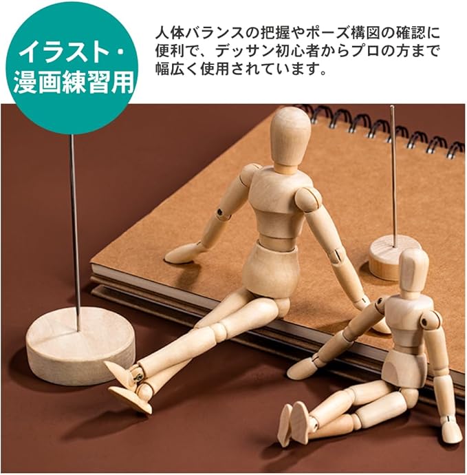 【イラスト・漫画練習用】人体バランスの把握やポーズ構図の確認に便利で、デッサン初心者からプロの方まで幅広く使用されています。付属の台座でしっかりと自立可能。机や棚に設置したままスケッチや資料観察が行えます。