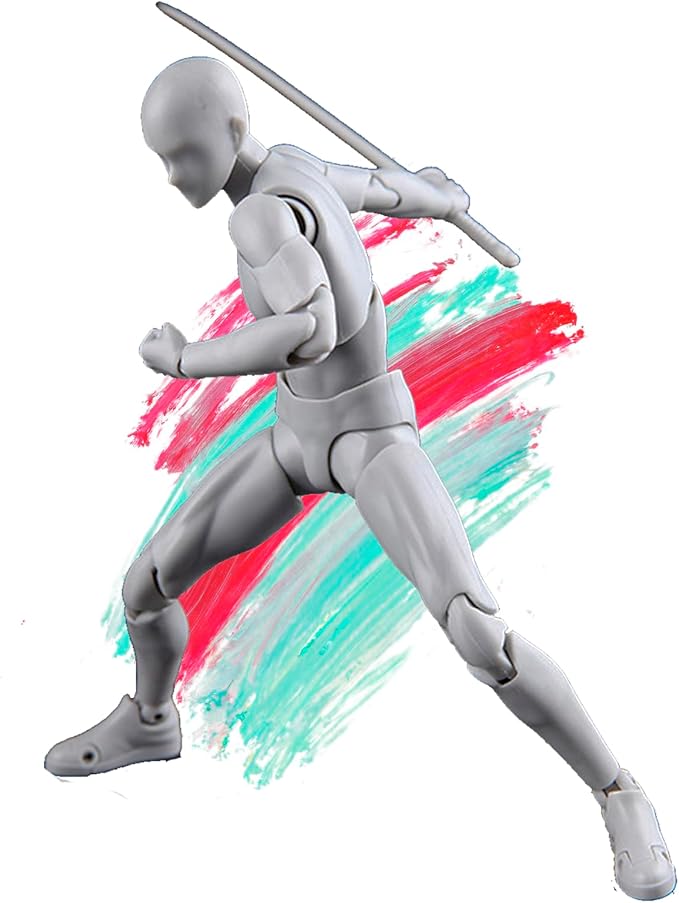 【関節可動】ヘッド、胸、腰、肩、肘、手首、膝、足首など30個関節が可動し、複数なポーズが再現できます。関節交換パーツと豊な武器道具が含まれ、360度回転もできます。プロな描く練習として、人の各動きをもっと把握することができ、絵をより鮮やかにします(セットにはパーツが含まれます)