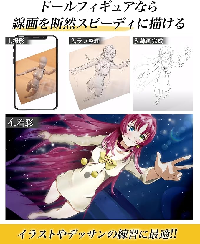 ✅【イラストやデッサンの練習に最適】 イラストや写真の構図、デッサンやデザイン、フィギュアがお絵描き、漫画の練習などにオススメです。あらかじめご確認ください!※細部において、多少の精度のばらつきがある場合がございます。※ポーズの自然さと安定性を優先し、可動域には設計上の制限がございます。※可動部に金属軸を採用しております。ご気になる点がございましたら、ご購入前によくご検討ください。