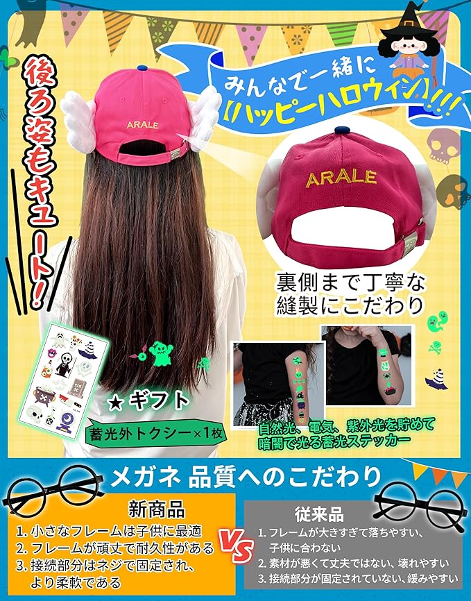 [CHALAN] 帽子 ハロウィン コスプレ キャップ メガネ 2点セット キッズ 帽子 道具 クリスマス 仮装 ベビー フリーサイズ 大人用 子供用