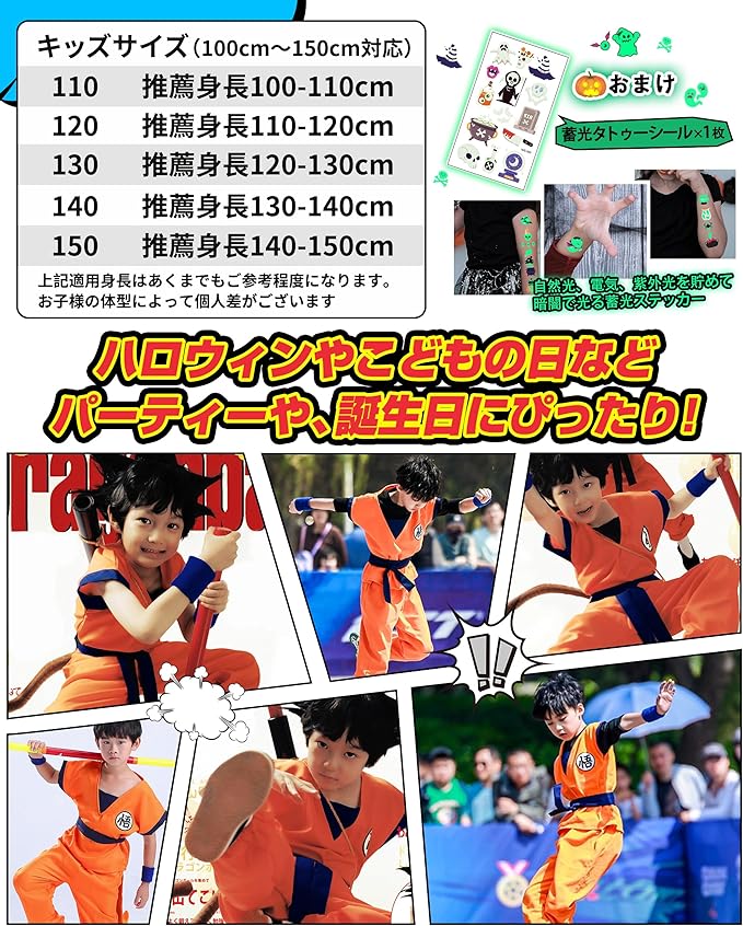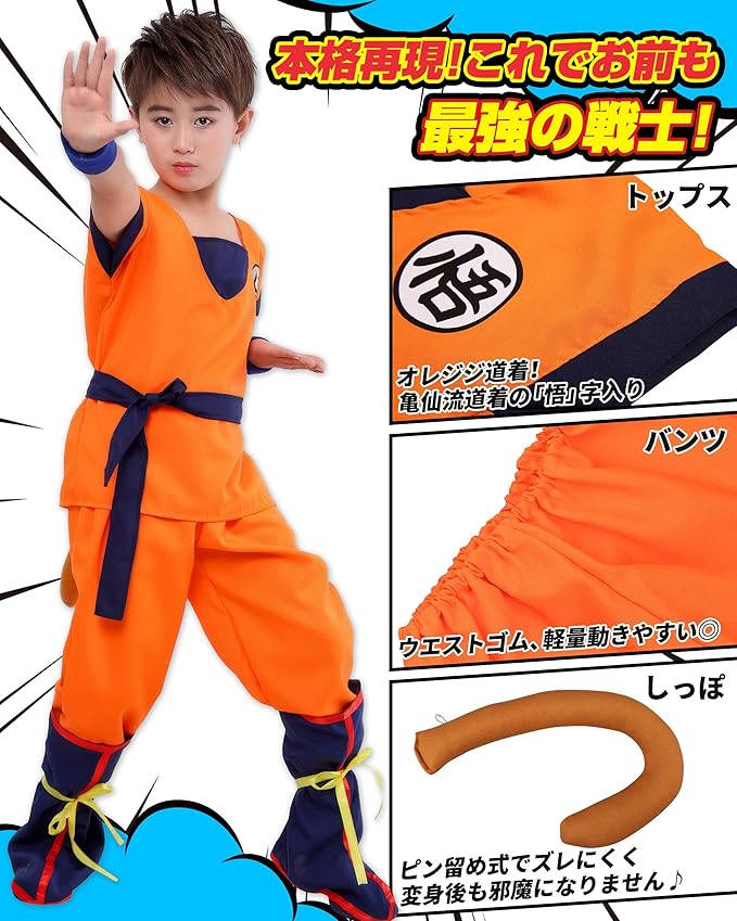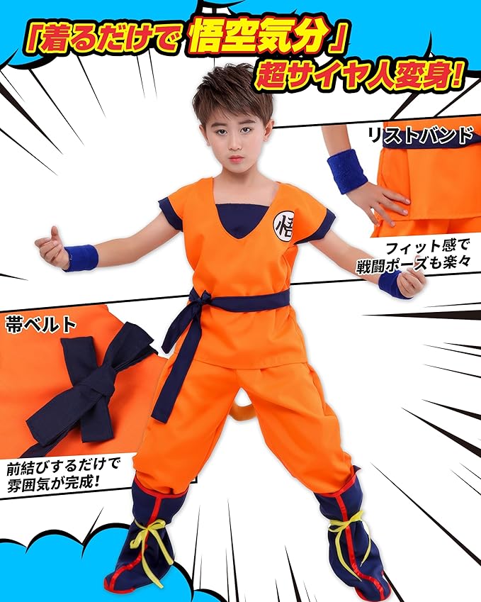 [CHALAN] コスプレ 子供用 豪華7点セット ハロウィン 仮装 修行着 亀 悟文字 キッズ 衣装 コスプレ服 コスチューム アニメマンガ 子供 パーティー キャラクター kids cosplay 誕生日 プレゼント 文化祭
