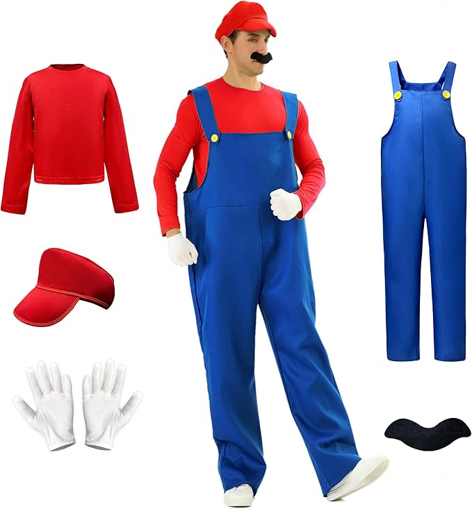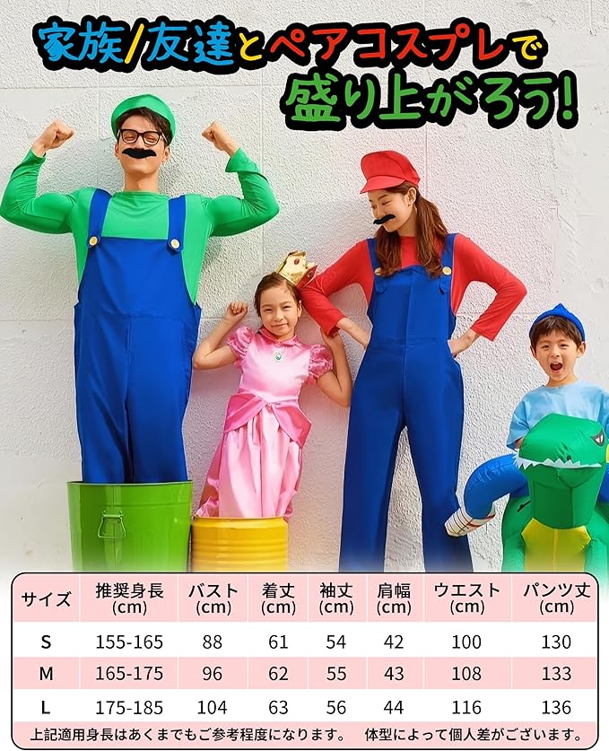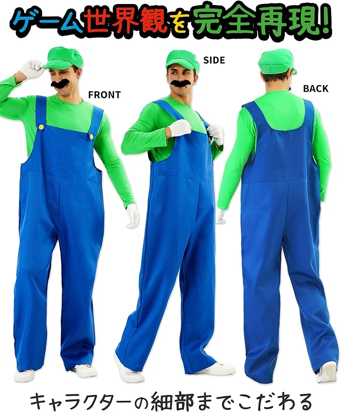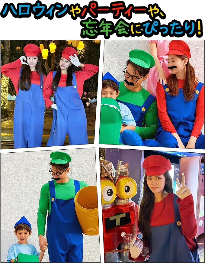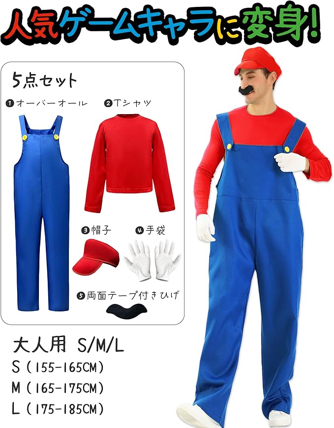 [CHALAN] ハロウィン コスプレ衣装 大人用 仮装 【5点セット オーバーオール Tシャツ 帽子 手袋 ひげ】 コスチューム コスプレ クリスマス イベンド 学園祭 変装 変身 ギフト プレゼント | etshop