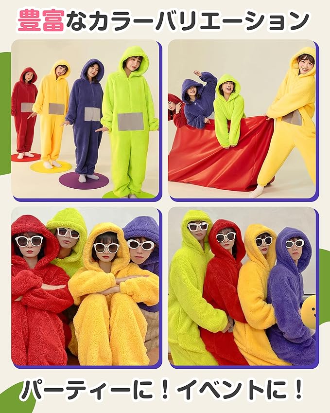 [CHALAN] テレタビーズ 着ぐるみ パジャマ ふわふわ フランネル素材 連体パジャマ 大人用 極暖 冬 防寒 ルームウェア カップル 男女兼用 Teletubbies あったか 室内着 きぐるみ ワンピースパジャマ 部屋着 コスプレ | etshop