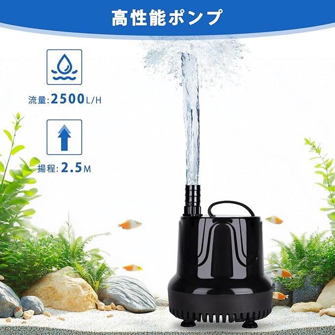 hygger 水中ポンプ 水槽 吐出量2500L/H 最大揚程2.5M 給水 水換え 底部入水式 静音設計 排水ポンプ 循環ポンプ 給水ポンプ 淡水 海水
