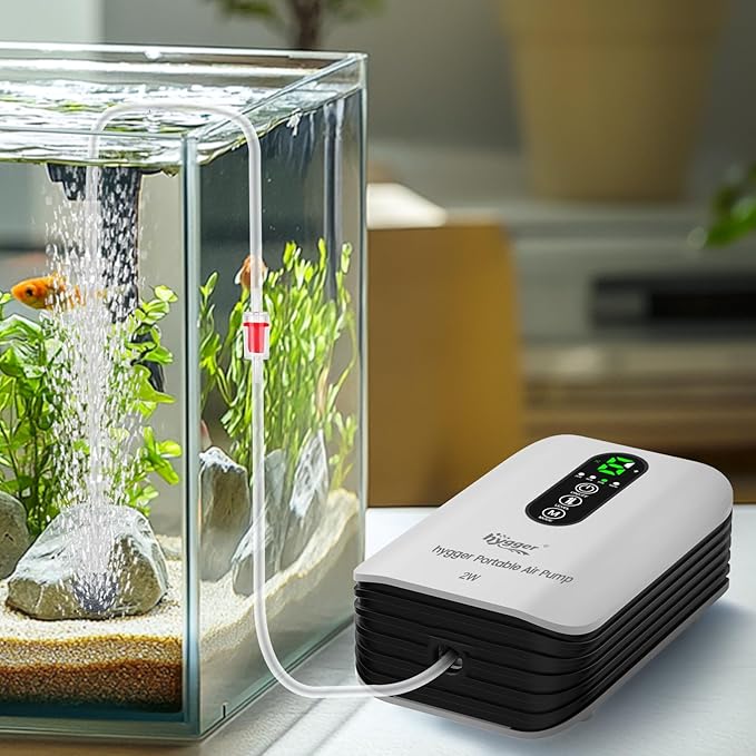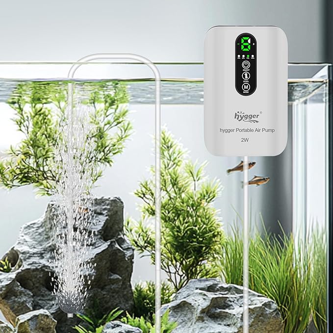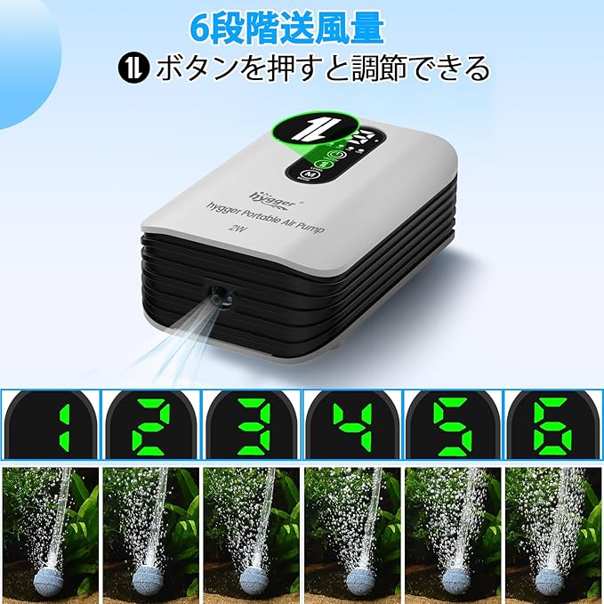 hygger エアーポンプ 釣り 充電式 水槽 最大1.5L/min 6段階風量 USB充電 AC/DC自動切替 35dB静音 ぶくぶく 防水 小型 軽量 金魚 メダカ ベタ