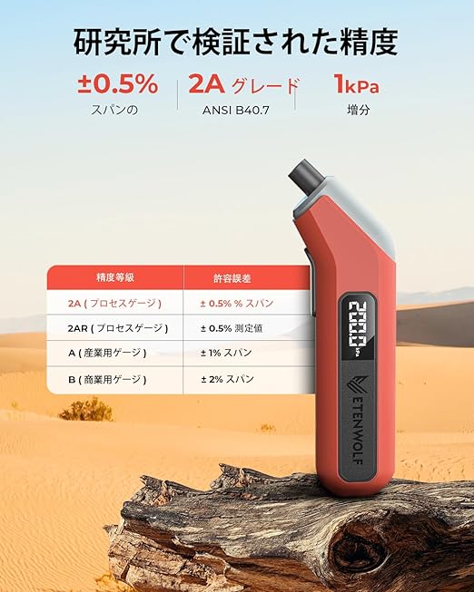 プロセスレベルの精度: 各ETENWOLFのタイヤ空気圧ゲージは、ANSI B40.7 グレード2A( 6.9 kPa)に手動で校正されています。