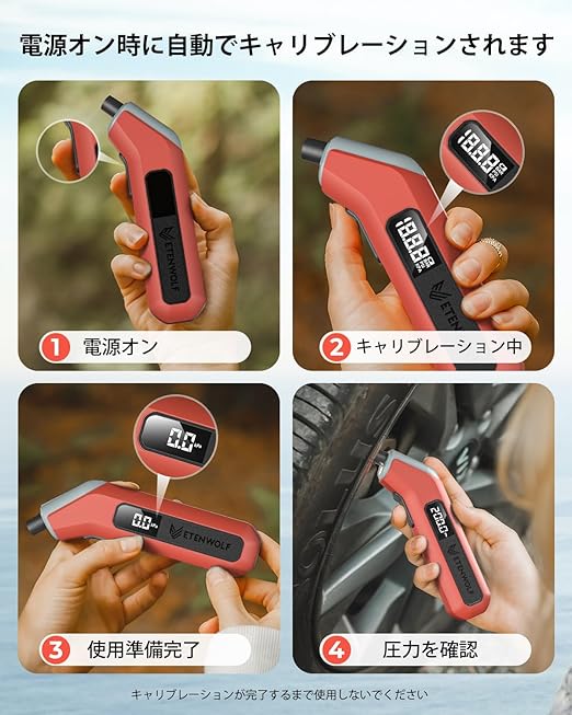 圧力範囲21-1379 kPa(3-200 PSI): ETENWOLFの空気圧計は、あらゆる車両の空気圧を測定できます。
