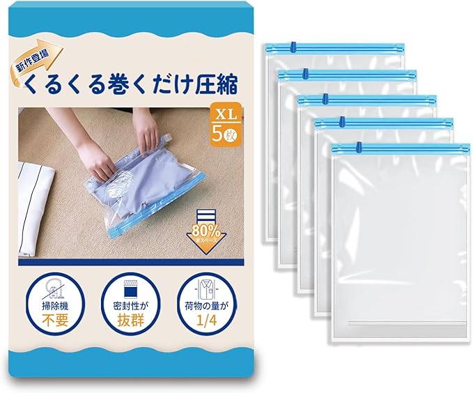 圧縮袋 旅行 衣類圧縮袋【旅行で大活躍】洋服収納袋 トラベルグッズ 圧縮パック 衣類圧縮 真空収納 出張 家族旅行 修学旅行(迷わず旅セットXL5枚)