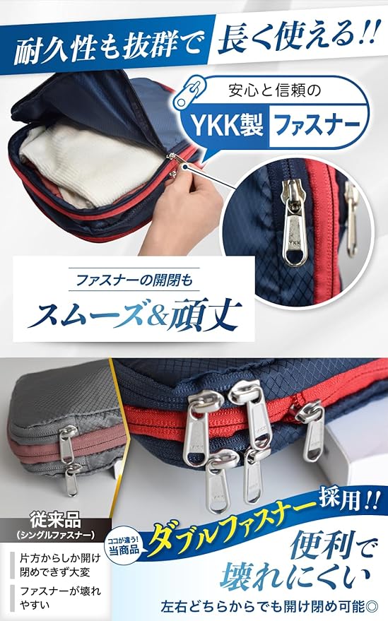 ✅【独自のダブルファスナー】全ての ファスナーにYKK製を採用し、さらに左右どちらからでも開きやすい、ダブルファスナーに改良しました!