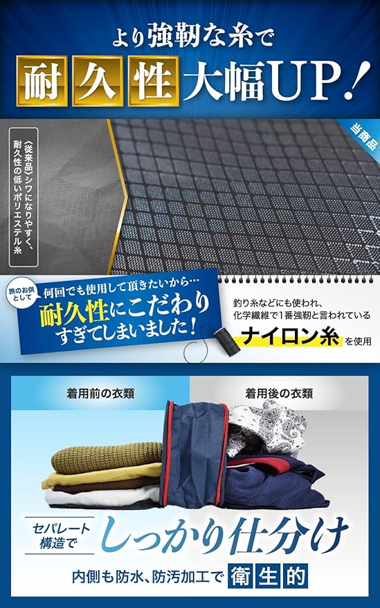 ✅【中身が見えないナイロン素材】 ナイロン素材だからビニール製の圧縮バッグのように中身が見える心配がありません。ふいにキャリーケースを開ける場面でも安心です。