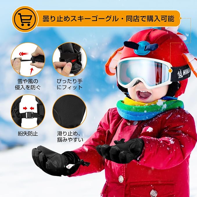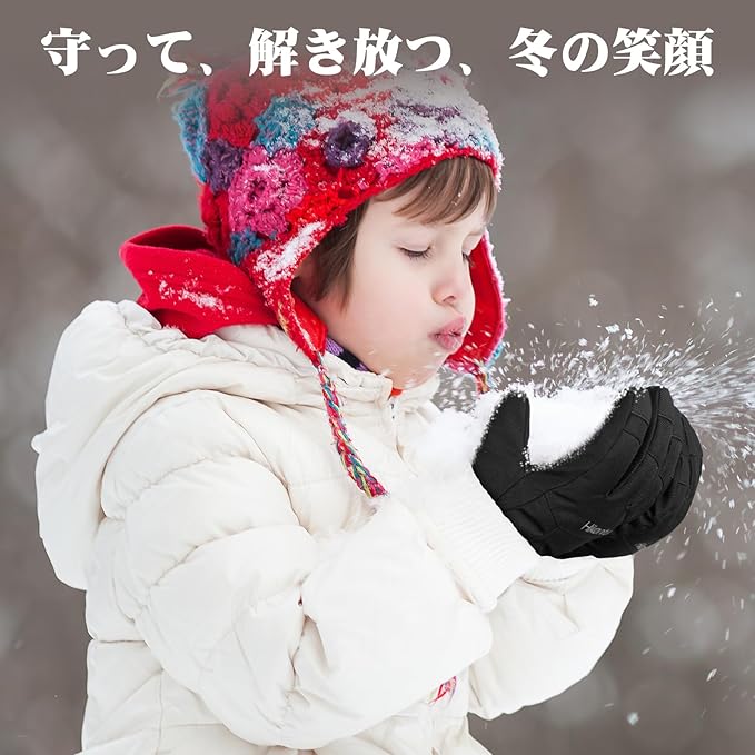 HIKENTURE手袋 キッズ【3M中綿・2倍保温力・防水】スキーグローブ 裏起毛 雪遊び・スノボ・通学・通園・自転車に最適 子供 ジュニア 男の子 女の子