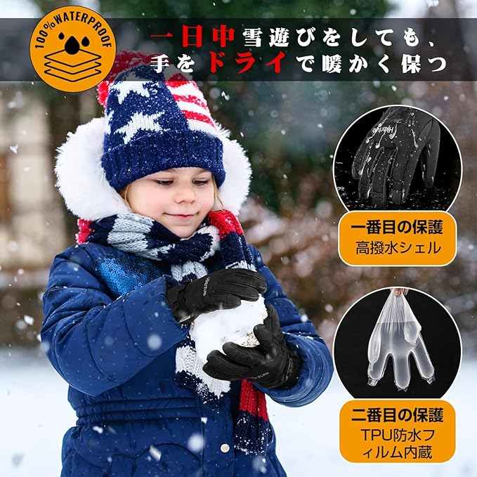 ❄【完璧な防水透湿性!】TPUフィルム内蔵、雪や雨から完全シャットアウト。子供の手を常にドライに保ち、風邪の心配なし!