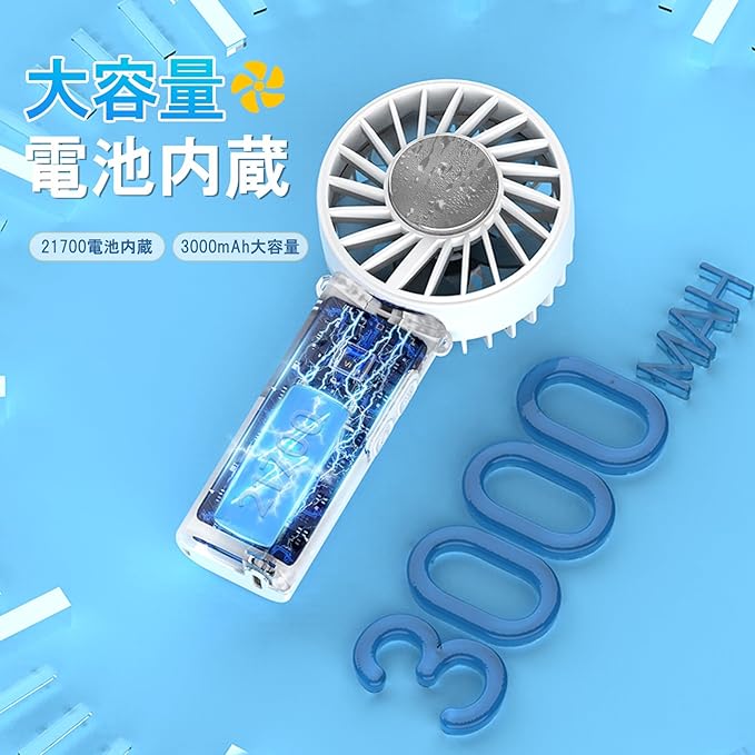 ❄️【2025夏モデル】風量切替が進化!ボタンを長押しすることで電源のON/OFFが可能、さらにシームレスな3段階風量調節と冷却プレートがボタン単押しで行えます。3000mAhの大容量バッテリーを内蔵し、まる一日の連続使用が可能。Type-C急速充電も対応。手軽に使える便利な機能満載!