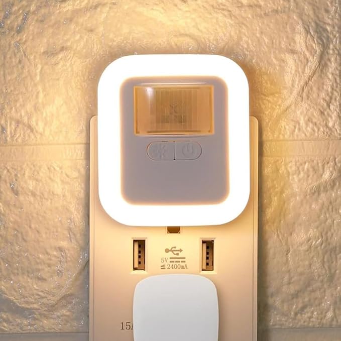 【2025年最新・PSE認証済】人感センサーライト 室内用 足元灯 明るさ10段階・点灯時間4モード・折りたたみプラグ搭載 コンセント式 高齢者の夜間トイレ対策 寝室/廊下/トイレに最適(オレンジ)