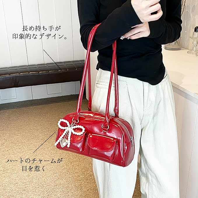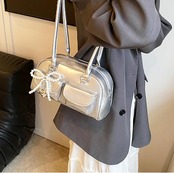 [Lapimou] ボストンバッグ 横長 肩掛け ショルダー レディース リボン 蝶結び シルバー a4 大きめ 大容量 人気 トレンド おしゃれ かわいい