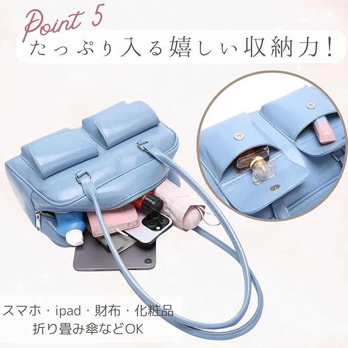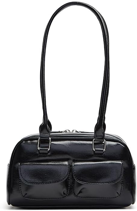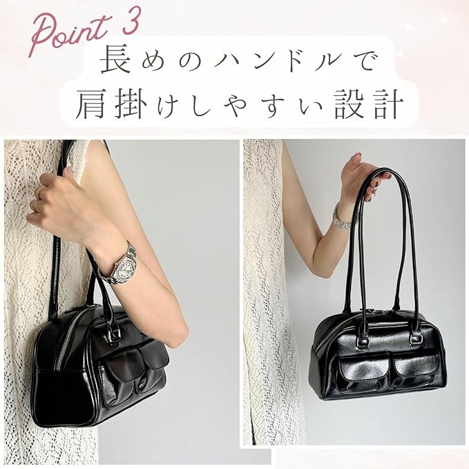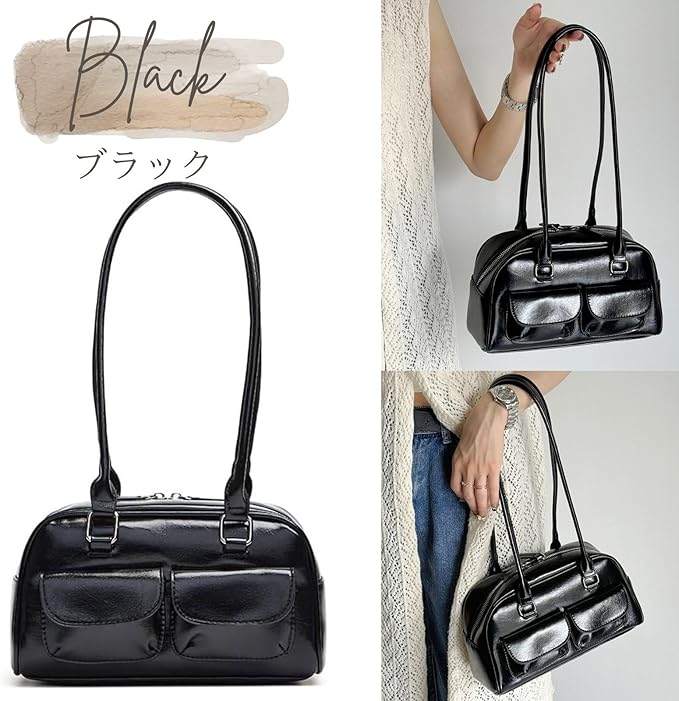 [ハルジオ] ダブルポケット ミニボストンバッグ 横長バッグ レディース ボストン ショルダーバッグ 小さめ バゲットバッグ トートバッグ 横長 肩掛け 横長ボストン 幅広 トレンド おしゃれ 可愛い