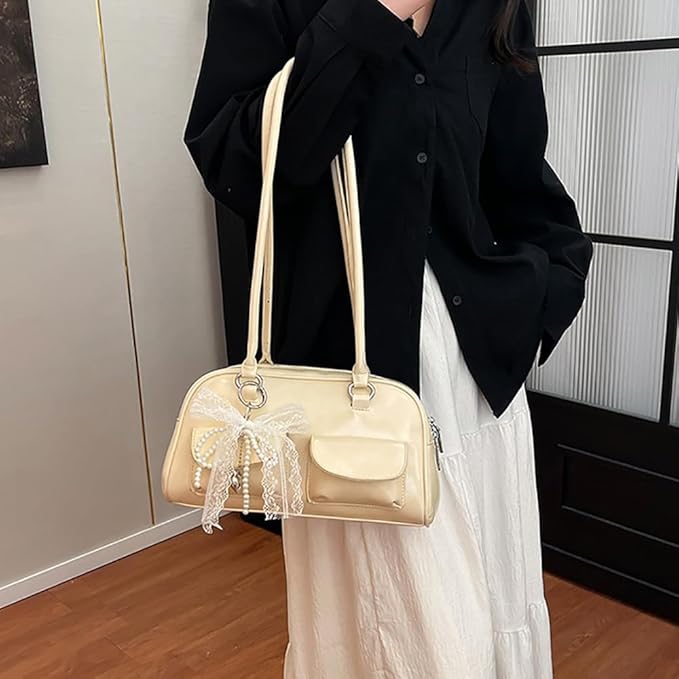 [LIKENNY] 横長バッグ リボン ボストン ボストン ハンドバッグ a4 大容量 横長 リボン 蝶結び レディース 肩掛けバッグ 人気 おしゃれ かわいい
