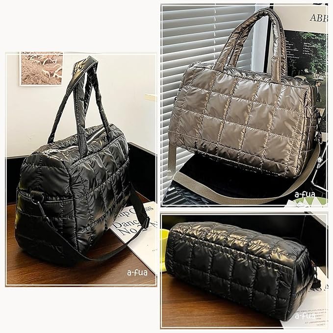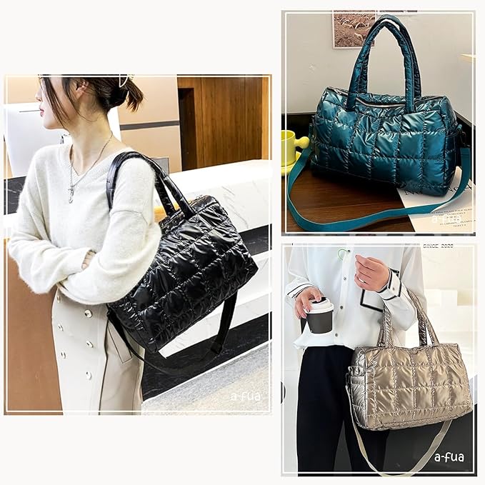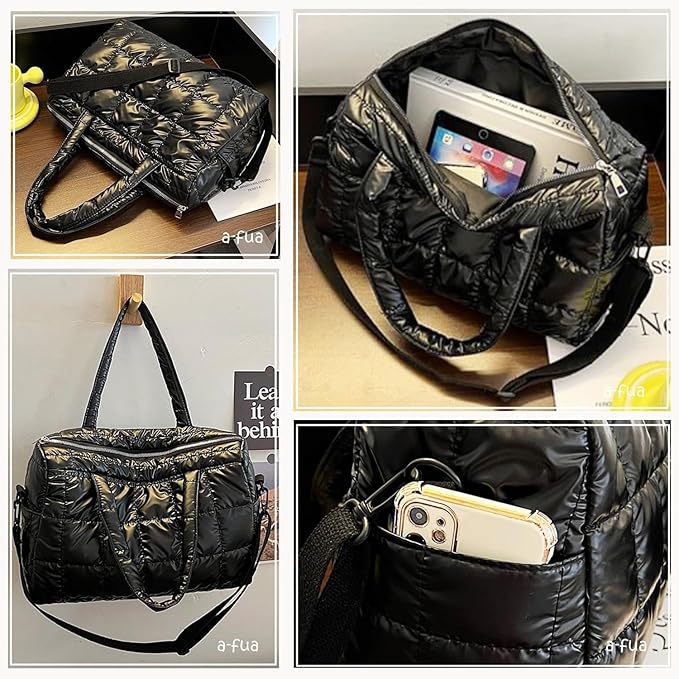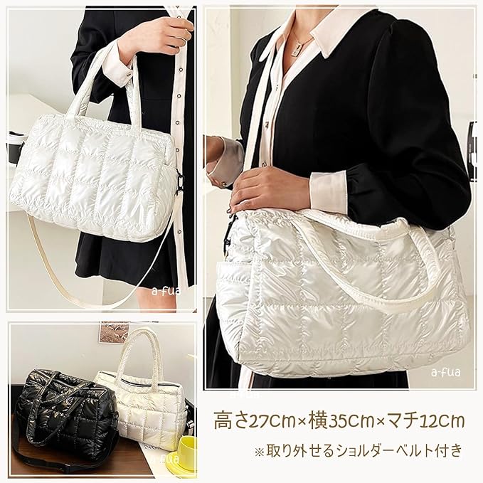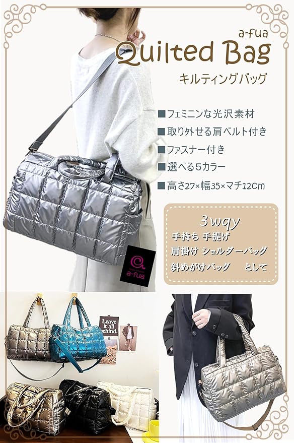 [a-fua] キルティング バッグ 光沢 ナイロン ボストン 肩掛け 斜めがけ 肩ベルト付き 横長 軽量 コンパクト ダウン風 通勤 レディース | etshop