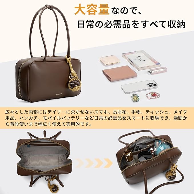 [Colosuoa] ミニボストンバッグ レディース 横長 小さめ ロングハンドル ハンドバッグ ボウリングペンダント付き 大人 自立 大容量 軽量 柔らかい 肩掛けカバン 通勤 日常 カジュアル 使いやすい おしゃれ ショルダーバッグ | etshop