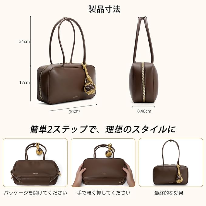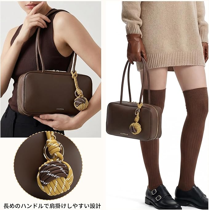 [Colosuoa] ミニボストンバッグ レディース 横長 小さめ ロングハンドル ハンドバッグ ボウリングペンダント付き 大人 自立 大容量 軽量 柔らかい 肩掛けカバン 通勤 日常 カジュアル 使いやすい おしゃれ ショルダーバッグ
